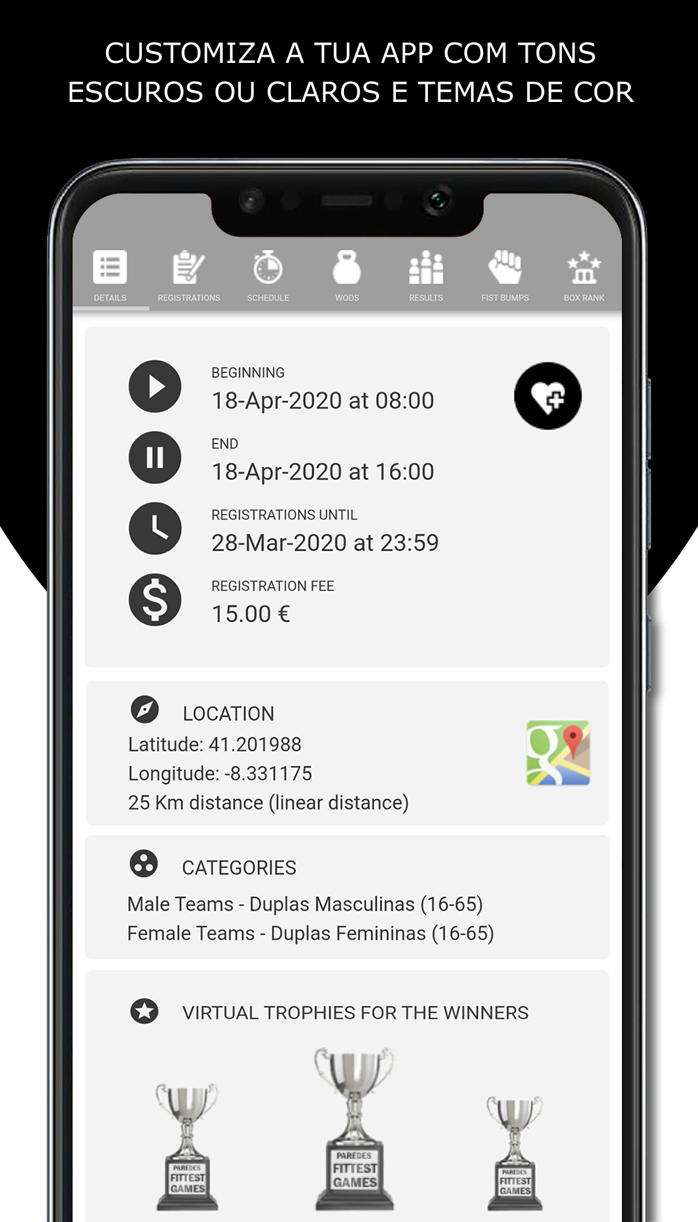 It offers athletes factual data of their evolution, creating a motivating and dynamic training process. The manager of the box it offers general evolution data of athletes, allows specific monitorization of class schedules, and also important statistical data regarding the management of human and financial resources! The creators are always available to support and always willing to improve to meet the needs!